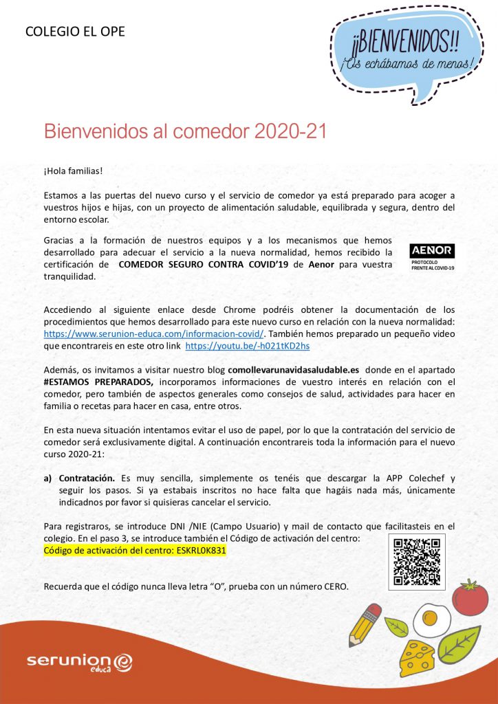 INFORMACIÓN COMEDOR SERUNION CURSO 2020-2021