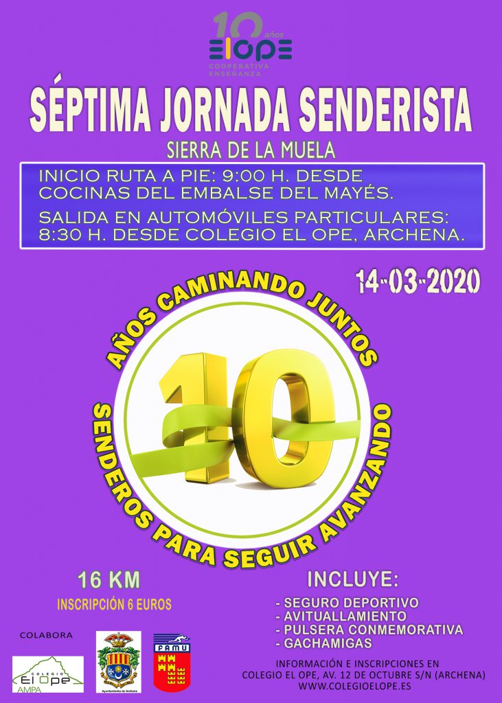 El próximo 14 de marzo tendrá lugar la séptima jornada de senderismo con motivo del décimo aniversario del Centro Educativo El Ope. En esta ocasión la salida está prevista a las 8:30 horas desde la puerta principal del Colegio El Ope en automóviles particulares, quien no tenga disponibilidad de automóvil deberá indicarlo en el formulario […]