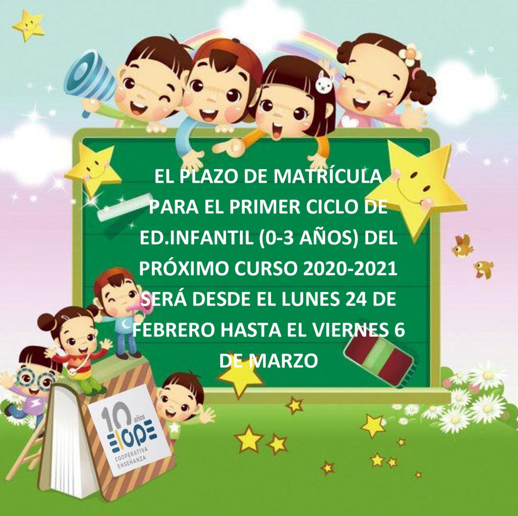 PLAZO DE MATRÍCULA DEL PRIMER CICLO DE EDUCACIÓN INFANTIL (0-3 AÑOS)