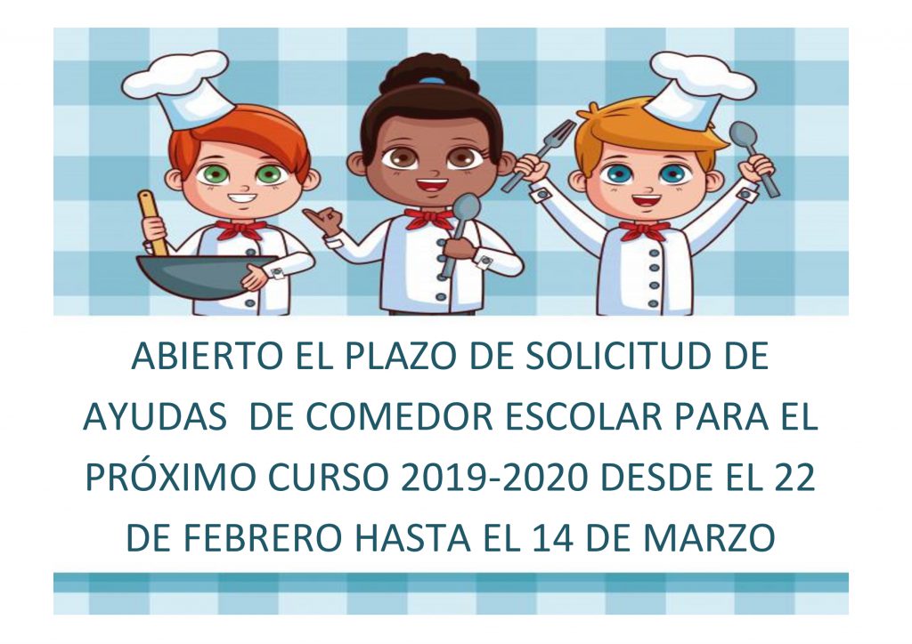 Comienza el plazo para la solicitud de ayudas de comedor del próximo curso 2019-2020.