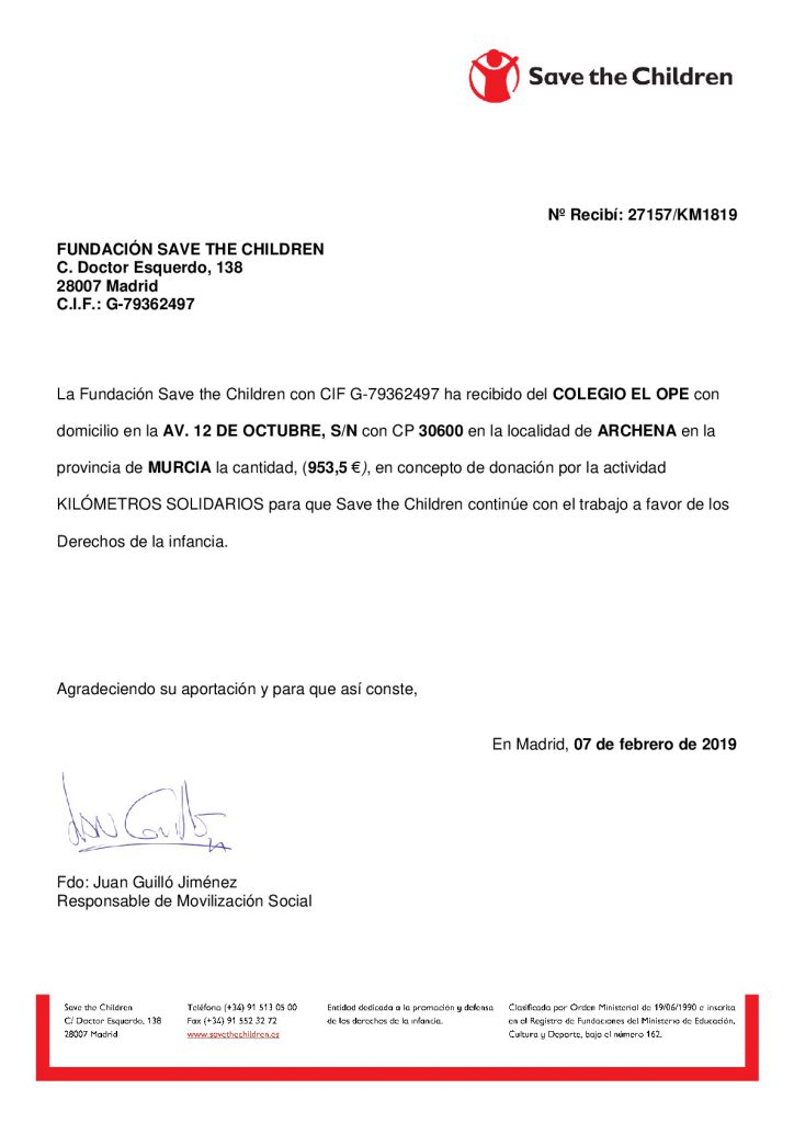 Un año más, el Colegio El Ope colabora con la Fundación Save the Children para promover la educación en valores de la cooperación, la solidaridad y los Derechos de la infancia.